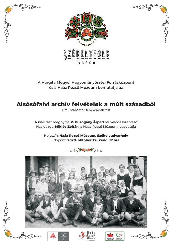 A székelyudvarhelyi Haáz Rezső Múzeumot körülvevő kerítés felületén 2020. október 13-án, kedden, 17 órakor nyílik meg az a fotó-dokumentációs kiállítás, amely alsósófalvi gyűjtés eredményeként született.