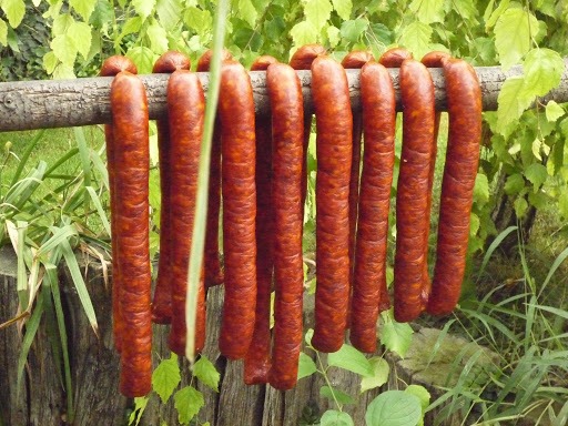 Illata is kifogástalan volt, hogy alig bírtam kivárni, amíg elkészül. Hanem amikor enni kezdtünk, lelkesedésünk jócskán alábbhagyott és csalódás ült ki arcunkra. Ez mi az? Hihetetlen, de ehetetlen! Íztelen volt, kivétel a füstölt íz és a bőséges só íze. Ezen kívül tele apró bogokkal, mely csontocskák és más megrághatatlan keménységek származékai lehettek! És mégsem ez számított a legrettenetesebb hiányosságnak, hanem bőrének (héja) keménysége, melyet, ha sikerült is késsel elvágnunk, hogy lehúzzuk, ráragadt az egész tartalom. Próbáltuk héjastól megrágni, mint az általunk ismert székely házikolbászt, de nem volt hozzá elég kemény a fogunk!