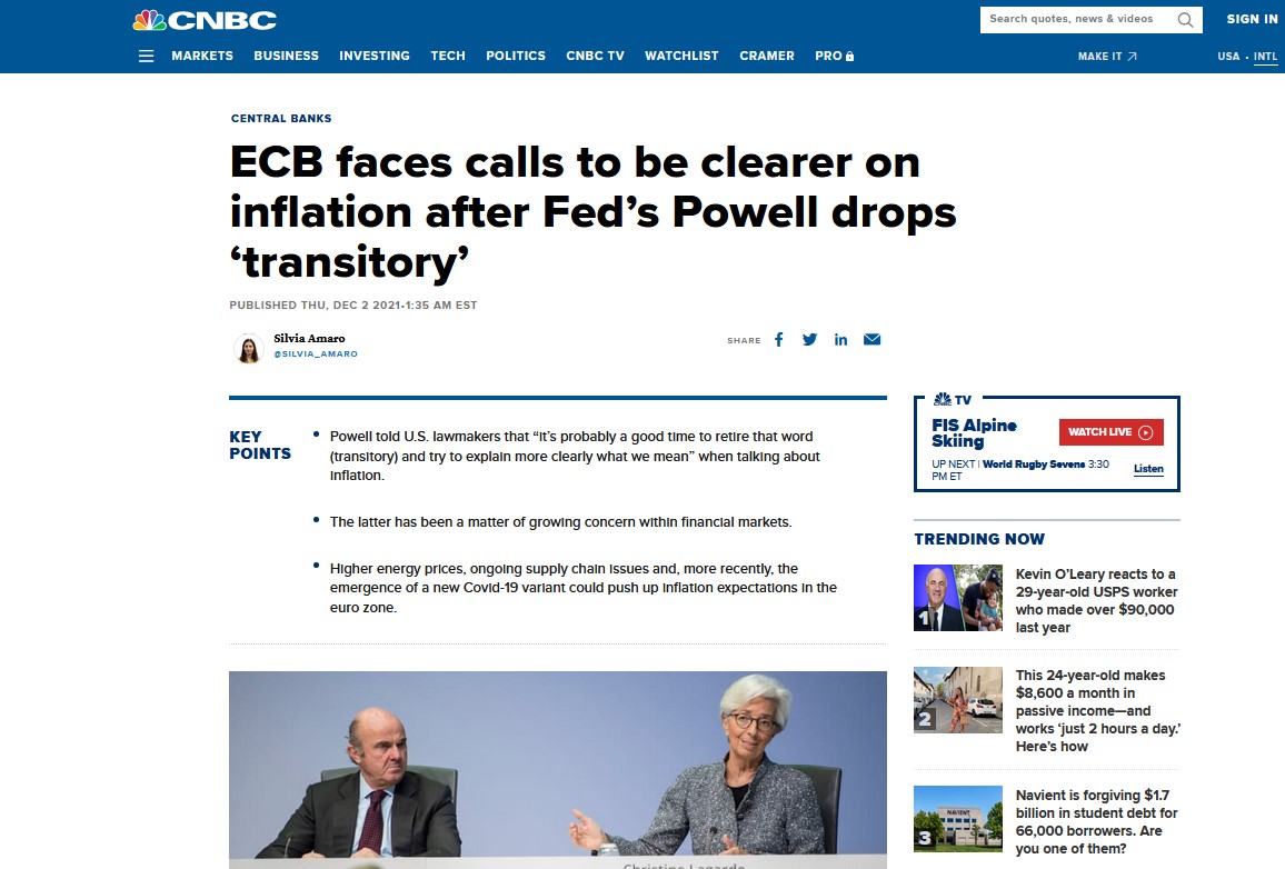 Az infláció jelenleg nem csak az Egyesült Államokban döntöget rekordokat, hanem Nagy-Britanniában is (5,1 százalék novemberben). De az euróövezetben is a valaha elért legmagasabb infláció alakult ki, ami elég nagy fejfájást okozhatott Christine Lagardének, az EKB elnökének, aki december közepén a kamatemelés ellen döntött, de felfüggesztette egyúttal a PEPP finanszírozást (azzal az ígérettel, hogy szükség esetén folytatják) bár ezzel együtt a “rendes” eszközvásárlási programot magasabb fokozatba kapcsolta. Ami gyakorlatilag a “plus ça change, plus c’est la même chose” (minél inkább változnak a dolgok, annál inkább folytatjuk ugyanúgy) bürokratikus alapelv egy újabb szép példája.